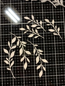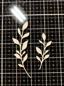 For my focal image, I take the two leaves from the Etched Meadow Flower And Leaves Dies Set and cut out of White Cardstock three times each, running them through my Big Shot. Using Liquid Glue I stack and glue the die cuts for dimension. Starting with the larger leaf die cut I adhere it onto my card front at an angle using Liquid Glue. I then add glue to the back of the smaller leaf die cut and adhere it crossing over the lower section of the first die cut.