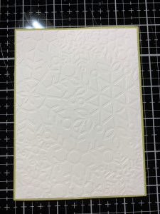 I start out by taking the largest die from the Master Layouts 1 Die Set and cut out of White Cardstock, running them through my Big Shot Die Cut Machine. To create some texture on this panel I place the Snowflake Cluster Stencil over the panel and run it through my Big Shot in the same order I would use if I were die cutting. *One or two cardstock shims can be added if you are not getting a good impression.