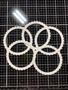 Using a die from the Infinity Circles Die Set I cut out my stamped image, running them through my Big Shot then set it aside while I work on my card front.