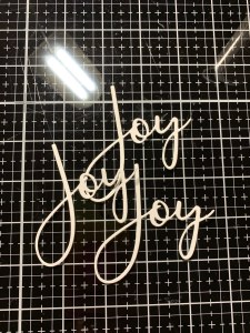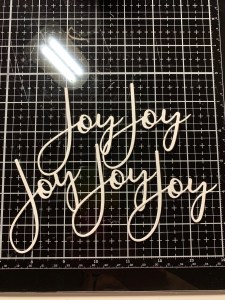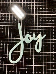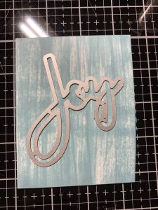 For my greeting I take the Large Joy Die Set and cut out of White Cardstock three times, running them through my Big Shot. I then stack and glue the die cuts together using Liquid Glue.