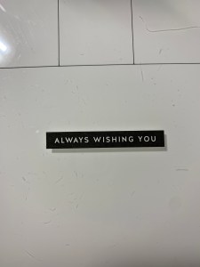 I now choose a sentiment from the Sentiment Strips Reverse Love Peace Joy and trim it down using my Guillotine Paper Trimmer. I add Liquid Glue to the back of the strip and mount it over my greeting.