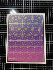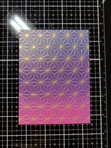 Today I have a card made with the Geometric Snowflakes Background Stamp from Simon Says Stamp. Wow!! This is my first time using this stamp and I LOVE IT!!! Such a beautiful design that is so quick and easy to create a background. I decided to use it on a full panel today but think it would be just as gorgeous trimmed down to a wide strip. Though the design is called a “snowflake” I feel this is a stamp that could easily be used year round. I chose to go bold on today’s card as I love the impact of the gold embossing over deep jewel tone colors, however, this background can also produce a subtle background by stamping in a watermark ink or even used for tone on tone stamping, such a versatile stamp!! Did you recognize the new color on my panel… Villainous Potion?!!! I couldn’t wait to try this color on a holiday card! Though this color is not a traditional holiday color, when I saw the reveal all I could think of was “I can’t wait to use this color on some of my Christmas cards”!!! For my ink blending I used Distress Oxide Inks over the embossed background. Because this is such a stunning background, I chose to keep my card simple by adding a greeting cut out of glitter cardstock for some added sparkle along with a pre-printed sentiment. I wanted the gold embossed background over the ink blending to show as much as possible! Let’s get started!!