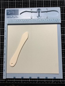 Next, I place a 6 1/4″ x 6 1/2″ piece of Whisper Cardstock into my Scor Buddy and score it at 3 1/4″ creating my card base. To give some dimension I add Foam Squares to the back of the panel then mount it onto my card base.