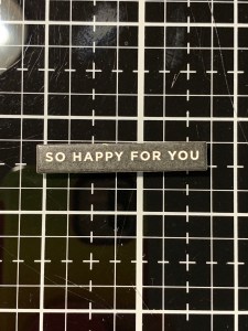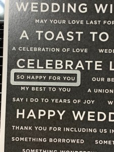 For a sentiment I use my Sentiment Strips Dies to cut out a sentiment from the Sentiment Strips Reverse Union Of Love, running them through my Big Shot. I add Liquid Glue to the back of my sentiment and mount it over the die cut on my card.