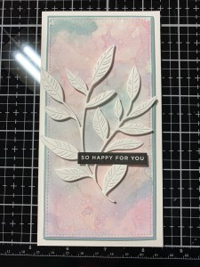 I hope you enjoyed today’s card. I love using die cuts as a simple focal image on a card with a sentiment strip and this die is just perfect for that! What makes this die so versatile is that it can be used as a stand alone die over any created background and can also be used as added foliage behind die cut floral images. I chose to go with a mini slimline size card today, however, this same layout would look beautiful on a regular A2 size card as well. With a simple design like this, by changing the sentiment this card would work for any occasion!