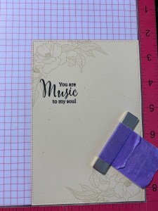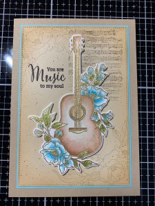 At this point I decided to add a greeting from the Music To My Soul Stamp Set and stamp it onto my card front, just above the sentiment using Amalgam Obsidian Black Ink and this completes my card.