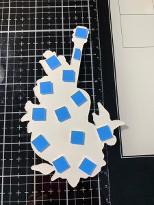 I now go back to my focal image and take the coordinating die from the Music To My Soul Die Set to cut my image out, running them through my Big Shot. I then add Foam Squares to the back of die cut, remove the release papers and mount it onto my card front.