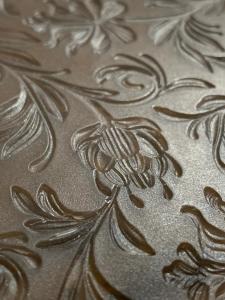 To start, I take my Distress Brayer and ink it up by rolling it over my Speckled Egg Distress Oxide ink pad several times. I then roll it onto the “inverted” side of my Botanical 3D Embossing Folder until I have even ink coverage over the background. *The inverted side of the folder (as shown in the photo) is the side where the background is smooth and the design is inverted rather that pushing up. You can see this and feel the side that is inverted. *Applying a layer or two of ink onto the folder will give lighter inked results, adding more layers of ink will give darker inked results.