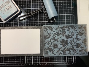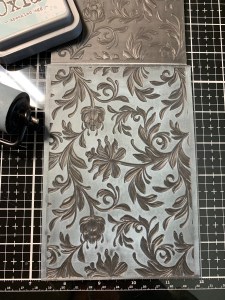 Today I have a card for you featuring an embossing folder with an inked background! I chose to use a beautiful 3D embossing folder for this technique, however this technique works with regular embossing folders as well. 3D embossing folders have become so popular and give such a beautiful look with so many different levels of dimension. Embossing folders can give subtle looks to a background, but by adding ink the images really pop! While any inks can be used for this technique, I love using my Oxide inks as they give such a soft, creamy result. The ink can be added by pressing the pad directly onto the folder, however, I like to apply my ink using a brayer. The brayer gives an even ink coverage and helps to eliminate any harsh lines that the direct ink pads can leave. I had fun trying different colors but in the end I chose Speckled Egg, this color is the perfect shade of a dusty kind of blue and is one of my favorites. Let’s get started!!