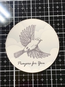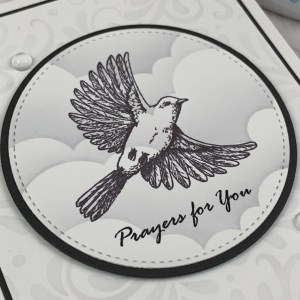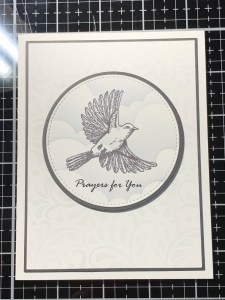Today I have created a card using the brand new Fearless Flyers stamp set from the new release for Gina K. Designs, which is available right now! Gina’s live presentation of all her new products starts at 7:00 PM CST tonight over on her YouTube channel and Facebook page. If you miss the live, be sure to watch the replay for a close look at all of the brand new products! If you missed out and have been waiting for Gina’s last kit, Watercolor Spring to restock, it is finally here!! I HIGHLY suggest if you are at all interested in this kit that you purchase it NOW. Gina ordered more plus extras but this is a highly sought after kit. This time around if the kit sells out again it will not be restocked. However, when her next kit comes out (June) the contents of this current kit will be sold separately. This was a hugely popular kit that had sold out in a record 3 hours!! This kit is filled with so much beautiful product which includes a layered floral stamp set with coordinating dies, an assorted sentiments stamp set, layering stencils, gorgeous patterned paper, ephemera and six ink cubes in brand new colors!!! Gina always packs so much into her kits and offers it at an incredible price!! Also available separately are the six new ink colors in full size ink pads! I am just as excited to see the new items from this release as all of you! You can view the new items on Gina’s website by clicking on the “What’s New” category or by clicking HERE. When I received my stamp set, Fearless Flyers my eye went straight to the image of a bird with its wings spread in flight. I thought this image would make a beautiful, peaceful card to let someone know that they are in your prayers by using a heartfelt sentiment from the set. I kept my card simple and neutral in color by using a soft gray ink color. All of the stamps, inks, cardstock and dies I used are from Gina K. Designs (the stencil is not). Let’s get started!!