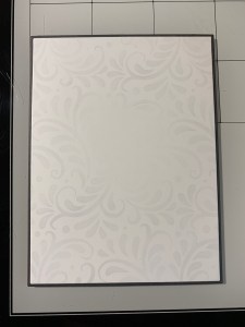 Next, I take the smaller rectangle die from the Master Layouts 1 Die Set and cut from the stenciled panel, I also take the largest rectangle die from the same Master Layouts 1 Die Set and cut out of Slate Cardstock, running them all through my Big Shot. I then used Liquid Glue to adhere the panels together.