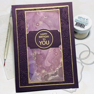 Do you love the look of alcohol inked backgrounds but struggle to achieve the perfect look? Today, I have a card that uses pattern papers to give the perfect alcohol inked look! While I love to play with my alcohol inks and can sometimes achieve the look I want, these papers give the perfect look every time without dragging out the mess! There are several different designs and colors included in this pack that go well with almost any color of cardstock! So simple and elegant too! I will also be using the brand new Tapestry Embossing Folder from Gina K. Designs’ latest release to create a backdrop for my pattern paper. This is a beautiful embossing folder that coordinates with the ever popular Holiday Tapestry Stamp Set, also from Gina K. Designs! Though the images are the same with the embossing folder and stamp set, the images on the folder are smaller in size. To make things simple and uniformed, I will be using two of Gina’s Master Layouts die sets to create my layers. I went with a 5 x 7 card size to give more space for my design to show through. Let’s get started!!
