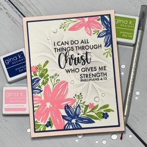 Today, I have a card using the Wonderful In Every Way and Sympathy & Love stamp sets. Both of these sets are brand new and part of the Gina K. Designs June release that is live right now! Starting at 7:00 PM tonight (CST) Gina will go live on both her YouTube channel and Facebook page with a close up look at all of the new products from this release, Gina also makes a quick card project at the end of her live presentation. Included in tonight’s release is a brand new KIT as well as stamps, dies, stencils, embellishments and a new incentive stamp set!! If you miss the live, be sure to catch the replays. All of the new products from the June release can also be found HERE. For today’s card I used a sentiment from the Sympathy & Love stamp set (which is filled with SO MANY encouraging sentiments) and surrounded it with the florals from the Wonderful In Every Way stamp set. I used the coordinating dies to mask off the florals and stamped some greenery from a couple of mini stamp sets. I love to mix and match stamp and die sets for even more use of my supplies! To add a little extra interest, I used a stencil and soft inking to go over my sentiment. All of the ink, cardstock, dies and stamps I use on today’s card are from Gina K. Designs. Let’s get started!!