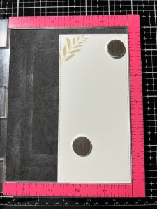 To start, I take the stitched rectangle die from the Master Layouts 7 Die Set and cut out of White Cardstock, running them through my Big Shot Die Cut Machine. I then place the panel into my MISTI Stamp Positioner and choose an image from the Happy Life Stamp Set and place it toward the top of my panel. I ink the stamp with Kraft Ink and stamp it onto my panel. To add some shading to this image, I leave the image attached to the door of my MISTI then take my Warm Cocoa Ink cube and add ink to the inner parts of the leaves of the stamp, I then take my Mini Blending Brush and tap around the outer edges of the inked leaves to soften the blend and stamp it over the stamped image. I now have an ink blended stamped image.