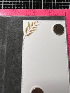 Now it’s time to put the card together. Taking the largest layering die from the Master Layouts 7 Die Set, I cut out of Warm Cocoa Cardstock, running them through my Big Shot. Using Liquid Glue I adhere the two panels together. Next, I place a 6 1/4″ x 6 1/2″ piece of White Cardstock into my Scor Buddy and score it at 3 1/4″ creating a side folding mini slimline card base. I then adhere the panels onto the card base using Liquid Glue. To add the sentiment I add White Foam Squares to the back of the circle die cut then mount it onto the card front. I then add Liquid Glue to the back of the flower and mount it onto the circle die cut just above the sentiment.