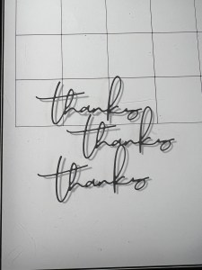 For my sentiment, a choose a die from the Blooms Collection Layered Script Sentiments Die Set and cut out of Slate Cardstock three times, running them through my P6. I stack and glue the die cut pieces together then adhere the sentiment onto my card front using Liquid Glue.