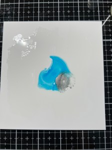 To start, I cut a piece of Yupo Paper (big enough to fit the floral die I will be using) with my Guillotine Paper Trimmer. I then add some Blending Solution to the panel along with one drop of Turquoise Alcohol Ink along with a small drop of Foundry Alloy and add one more drop of Blending Solution over the Alloy. *Adding the blending solution over the alloy allows the alloy to move around freely and blend well. Using my Air Blower, I move the inks around and blend them until I am satisfied with the look. I then set the panel aside to dry while I work on my background. I chose to use the foundry alloy over the sterling as it was a good match to go along with the matte silver cardstock I would later be using. If I were using shiny mirrored cardstock, I would have went with the sterling alloy. *I only used one drop of color on my panel as I was going for a soft muted look. If you want more vibrant color, simply add more drops of ink to the panel.