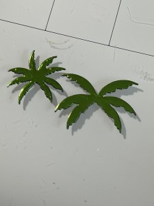 Using Liquid Glue I adhere my two panels together then onto a white card base. I take the smaller palm and glue it offset just a bit to give it a shadow effect onto the top of the tree. For a little dimension, I add small pieces of Foam Tape to the large palm and adhere it offset a bit to the top of the tree.