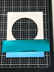 Now that my gel has had a chance to completely dry (you will know the gel is dry when it turns completely clear) I cut a strip of Turquoise Sea Foil and place it over the gel. I then place the panel into a Carrier Sheet then run them through my heated laminator. I wave the panel through the air for a few seconds to cool it down a bit then remove the foil piece. I now have beautiful foiled bubbles/foam floating over my waves!