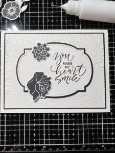 Using my Pick & Stick Tool I add some Black Pearls scattered around the sentiment with Liquid Glue and this completes my card.