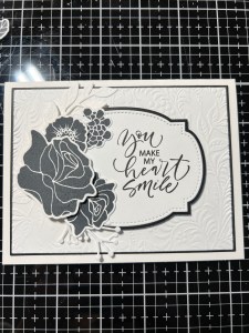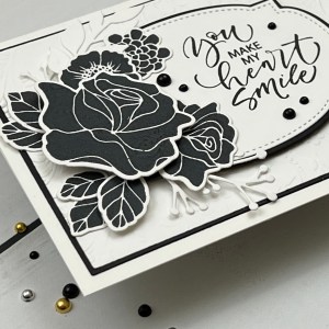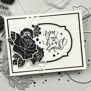 I hope you enjoyed today’s card, I love how quickly this card came together. I played around with colored ink and even embossing, but changed my mind in the end and decided on the black and white layout. I really love the results, it is a clean and simple look with the black really standing out against the white, simple yet elegant. This card can be made for any occasion and would make a beautiful wedding or shower card. You can’t go wrong with creating a background using an embossing folder, it adds a subtle look without taking away from the rest of the card. If you cannot catch Gina’s live at 7:00, be sure to check it out on replay on her YouTube channel to see lots of card examples from the illustrators!