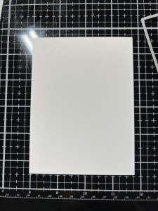 Next, I place a 5 1/2″ x 8 1/2″ piece of White Cardstock into my Scor Buddy and score it at 4 1/4″ to create my card base. Using Liquid Glue I mount my panels onto the card base. I will be creating my card with the fold at the top for a landscape presentation.