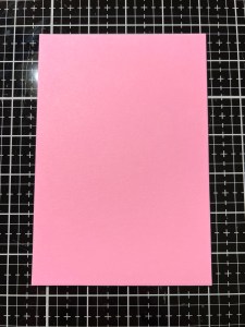 Next, I take the largest rectangle die (layering die) from the Master Layouts 8 Die Set and cut out of Bubblegum Pink Cardstock, running them through my P6. Using Liquid Glue I adhere the two panels together. I then place a 7″ x 10″ piece of White Cardstock into my Scor Buddy and score it at 5″, creating a 5″ x 7″ card base. I then center and mount my panels onto the card base using Liquid Glue.