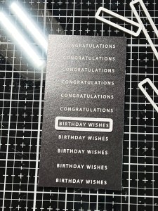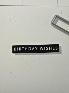 Next, I choose a sentiment from the Mixed Messages Sentiment Sheets and take a die from the Sentiment Strips Die Set to cut it out, running them through my P6. I add some Liquid Glue to the back of the sentiment and mount it onto my card front, tucking it under the happy die cut.