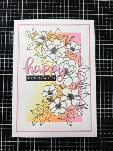 Today, I have a card that uses the bleaching technique! Bleaching is a fun technique that uses the smallest amount of bleach to paint onto stamped images resulting in the removal of, in this case, blended ink. I chose a stamp with larger images for today’s card and love the results! You can bleach as little or as much of an image as you want, with this card I chose to bleach only the flowers and allow my ink blend to show through the rest of the details. ***Remember, when using bleach to work in a well ventilated area*** Bleaching works great for both small and large areas. For better control of the bleach, I like to use a very small paintbrush and a small amount of bleach, a little goes a long way! All of the stamps, dies, inks and cardstock I use today, are from Gina K. Designs. Let’s get started!!