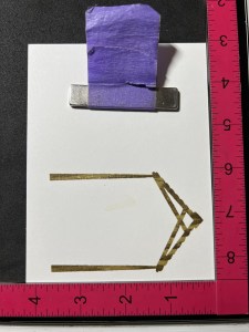 With Liquid Glue, I adhere the greeting strip onto the lower section of the panel. I then glue down the remaining elements.