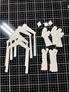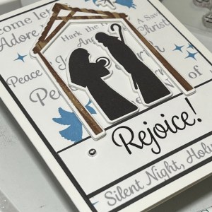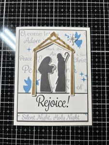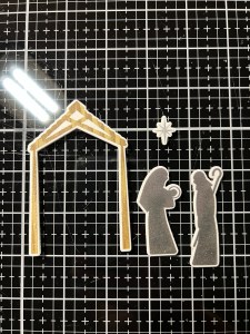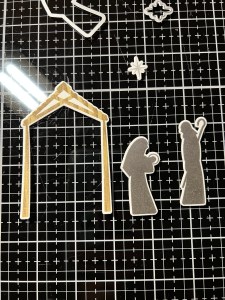 Using the coordinating dies from the Silent Night Die Set, I cut out my images, running them through my P6. I also use the same die to cut out of White Cardstock three times, with the exception of the stable which I cut out four times. I then stack and glue everything together using Liquid Glue.