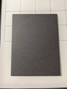 Using the largest layering rectangle die from the same Master Layouts 1 Die Set, I cut out of Slate Cardstock, running them through my P6. I then adhere the two panels together then mount onto a white card base using Liquid Glue.