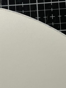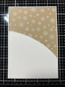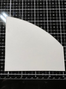 Next, I create a hill for my panel. I take the hill die from the Master Layouts 6 Die Set and cut a curve out of White Cardstock, running them through my P6. I take a pair of scissors and cut away the side that the die didn’t cut then take the same stitched rectangle I used to cut my panel and cut out the hill, running them through my P6.