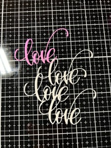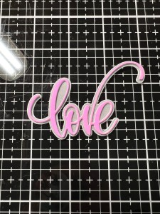To color coordinate my die cut greeting, I take a piece of scrap White Cardstock and blend Light Carnation Ink onto it using my Blending Brush, then blend Light Orchid Ink over that. I then take the Love And Shadow Die and cut out of it, running them through my P6. I also cut out of White Cardstock three times.