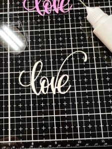 Using my Fine Tip Glue Bottle filled with Liquid Glue, I adhere the white pieces together then glue the ink blended piece on top for some dimension. Next, I take the shadow die and cut out of Vellum, running them through my P6. I then adhere the stacked die cut onto the vellum piece using Liquid Glue.