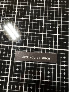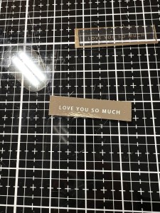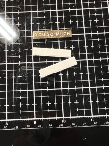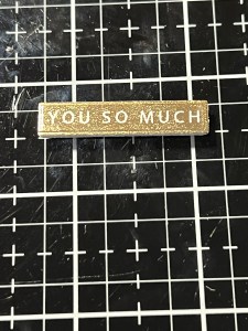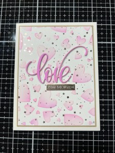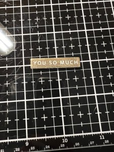For my sentiment, I choose one from the Mixed Messages Sentiment Sheets and cut it apart. Because these sheets are printed in toner ink, they can be foiled! Using the same Champagne Deco Foil, I repeat the same foiling procedure as I did with my panel and run it through my Fuse Laminator. I then take a die from the Sentiment Strips Die Set and line it up to only cut out “you so much” as I didn’t want the “love” portion and hold it into place using Pixie Tape. I then run them through my P6 and now have a beautiful foiled sentiment.