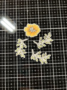 Using the coordination dies from the Wishing You Well Die Set to cut out the images, I run them through my P6. I then set everything aside while I work on my panel.