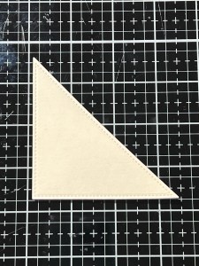 To add a little interest to my panel and to create a grounding element for my focal image, I take the triangular stitched die from the Master Layouts 5 Die Set and cut out of Barely There Cardstock, running them through my P6. Using Liquid Glue, I adhere the die cut piece onto the bottom left corner of my blended panel.