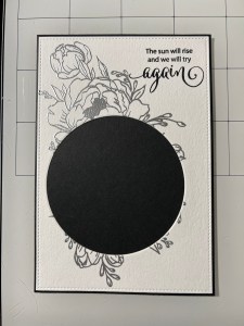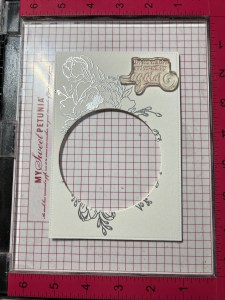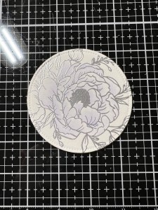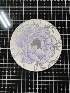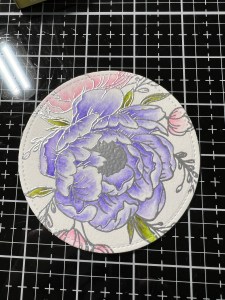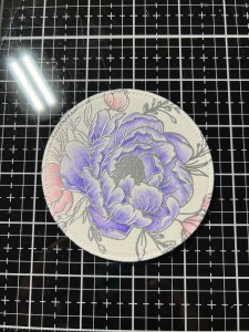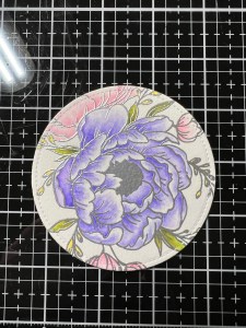 To create my “spotlight” image, I take the largest die from the Single Stitched Circle Die Set and place it over the area of the design that I want to watercolor then run them through my P6. I place the panel aside as the circle is the only image I will color.
