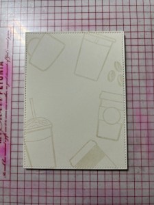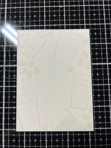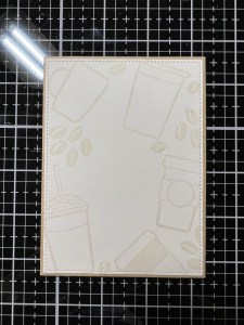 Using the same coffee bean images from the Daily Grind Stamp Set, I stamp them using Whisper Ink to fill in the open areas of the panel.