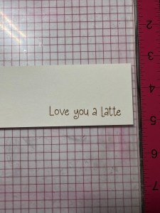 Next, I choose a sentiment from the same Daily Grind Stamp Set and stamp it onto Ivory Cardstock, using Warm Cocoa Ink. I then trim the sentiment down using my Guillotine Paper Trimmer and adhere it just below my focal image with Liquid Glue, allowing it to hang off the edge of the panel.