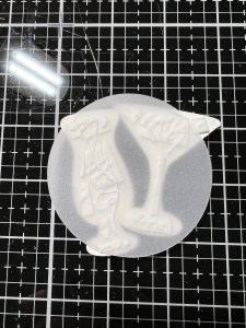 Now that my coloring is complete I take the coordination dies from the same Cheers Stamp Bundle and position them over the images, holding them down with tape. I then run them through my Platinum 6 Die Cut Machine. I also cut out and extra image of both glasses out of White Cardstock to give my images more stability. Using Liquid Glue, I stack and glue the images together. To add a little highlight to the glasses, I take my White Gel Pen and draw a couple of lines and dots.