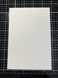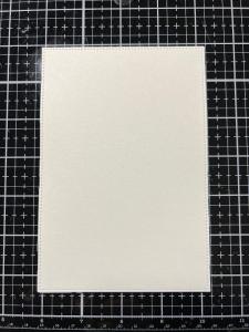 Next, I take the largest rectangle die from the same Master Layouts 8 Die Set and cut out of White Cardstock, running them through my Intri-Cut. Using Liquid Glue I adhere my blended panel onto the white one. For my card base, I cut a sheet of Kraft Cardstock to be 7″ x 10″ using my Guillotine Paper Trimmer. I then place the piece into my Scoreboard and score it at 5″ which creates a 5 x 7 card base. Using Liquid Glue, I adhere the panels onto the card base.