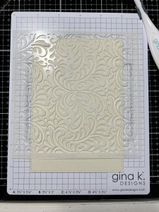 Can you believe it’s time for another Gina K Designs release!!? Available now is Gina’s April release and you can see all of the new products HERE. There will not be a new kit this release, but there is a new Master Layouts die set, as well as many stamps and bundles!! Gina will be showcasing all of the new products up close during her live at 7:00PM CST over on her YouTube channel and Facebook page. If you cannot make the live, you can always watch it on the replay on her YouTube channel. Today, I have a card using the new, Beautiful Roses Stamp & Die Bundle, illustrated by Melanie Muenchinger. I decided to use the full bouquet and large vase with some simple ink blending, I then added more depth using just one colored pencil on the roses and another on the stems and leaves. Amazing what a colored pencil over ink blending can do! Using my scoreboard, I created a textured area for my vase to sit then used a stencil to create a patterned backdrop. I love using stencils to ground my images! All of the stamps, dies, inks, cardstock and stencils are from Gina K Designs. Let’s get started!!