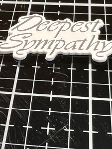I ink up the stamp with Obsidian Black Ink and stamp it onto the die cut piece. I now have my sentiment stamped and centered onto my die cut. I cut an additional two pieces then stack and adhere them together using Liquid Glue then glue the sentiment onto the front of my card.