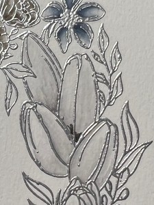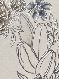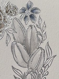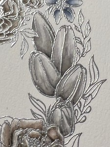 For the lilies, I add Mid Gray – 094 to the base of the petals then use my Water Brush to blend the color out toward the tips. I repeat this for the other four lilies. Next, I add Dark Gray – 095 to the base and blend the color out and repeat with the others. I then go back with and add another layer to darken up the color towards the bottom and also where petals overlap each other.