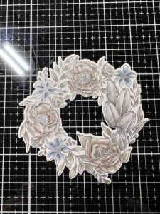 Now that my coloring is finished, I take the coordinating die from the Bouquet Frame Bundle and cut my image out, running them through my Intri-Cut Die Cut Machine then set it aside while I work on the rest of the card.