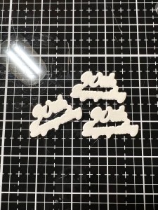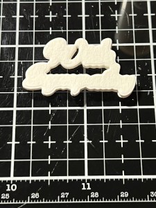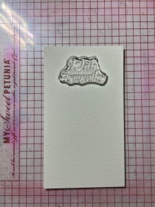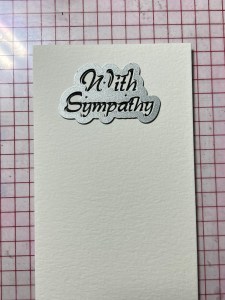 For my greeting, I choose one from the same Bouquet Frame Bundle and stamp it onto the same Watercolor Cardstock using Amalgam Obsidian Black Ink. I then take the coordinating die and cut my greeting out, running them through my Intri-Cut. I also use the same die to cut out of water color cardstock, three times. Using Liquid Glue, I stack and glue the three pieces together.