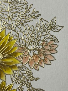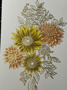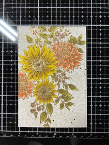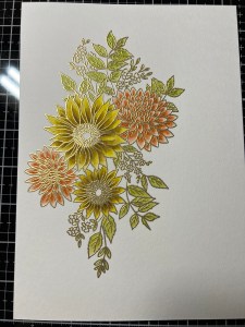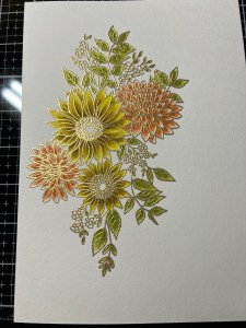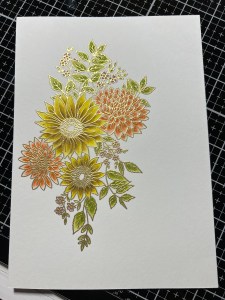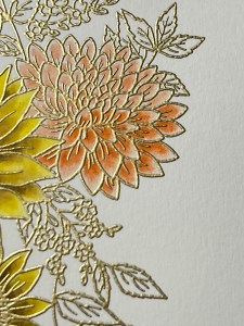 I’m still wanting more contrast and depth for these flowers, so I add a little Faded Brick Ink to the base of the petals and blend out about half way on each petal. To finish these flowers, I paint Wild Dandelion Ink over each of the petals to brighten them up and pull all of the colors together.