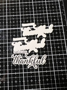 Next, I chose a greeting from the Change Is Beautiful Stamp Set and stamped it onto the same Watercolor Cardstock using Amalgam Obsidian Black Ink. After giving the ink time to dry, I took the coordinating die from the Change Is Beautiful Die Set and cut it out, along with two more cuts out of the same cardstock. Using Liquid Glue, I stacked and glued them together then adhered the greeting onto the front of the card.